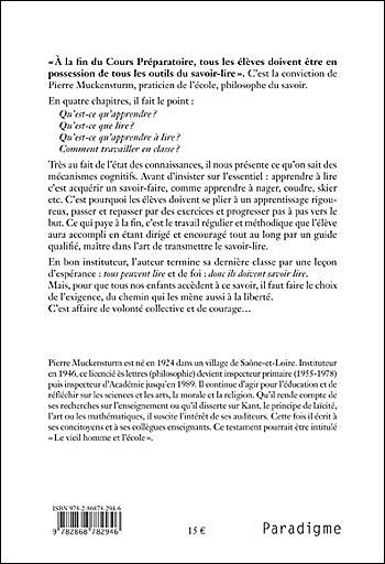 « À la fin du Cours Préparatoire, tous les élèves doivent être en possession de tous les outils du savoir-lire ». C'est la conviction de Pierre Muckensturm, praticien de l'école, philosophe du savoir.