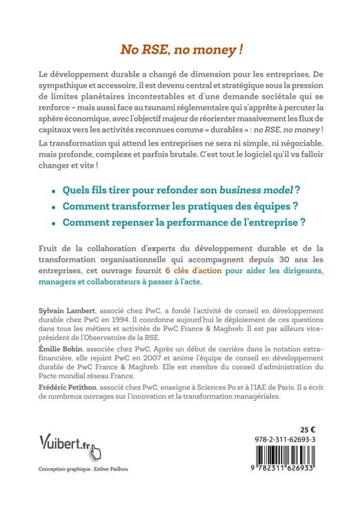 Fruit de la collaboration d’experts du développement durable et de la transformation organisationnelle qui accompagnent depuis 30 ans les entreprises, cet ouvrage fournit 6 clés d’action pour aider les dirigeants, managers et collaborateurs à passer à l’acte.