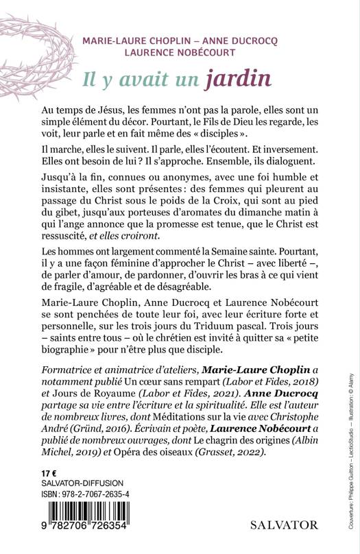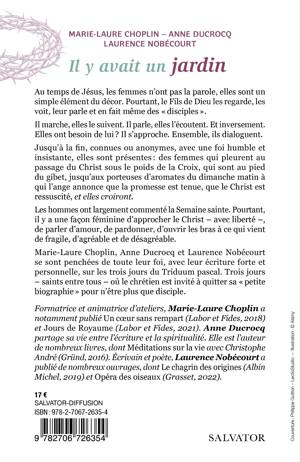 Au temps de Jésus, les femmes n'ont pas la parole, elles sont un simple élément du décor. Pourtant, le Fils de Dieu les regarde, les voit, leur parle et en fait même des « disciples ». Il marche, elles le suivent. Il parle, elles lécoutent. Et inversement. Elles ont besoin de lui ? Il s'approche. Ensemble, ils dialoguent. Jusqu'à la fin, connues ou anonymes, avec une foi humble et insistante, elles sont présentes : des femmes qui pleurent au passage du Christ sous le poids de la Croix, qui sont au pied du gibet, jusqu'aux porteuses d'aromates du dimanche matin à qui l'ange annonce que la promesse est tenue, que le Christ est ressuscité, et elles croiront. Les hommes ont largement commenté la Semaine sainte. Pourtant, il y a une façon féminine d'approcher le Christ avec liberté, de parler d'amour, de pardonner, d'ouvrir les bras à ce qui vient de fragile, d'agréable et de désagréable. AUTEURS Marie-Laure Choplin, Anne Ducrocq et Laurence Nobécourt se sont penchées de toute leur foi, avec leur écriture forte et personnelle, sur les trois jours du Triduum pascal. Trois jours saints entre tous où le chrétien est invité à quitter sa « petite biographie » pour n'être plus que disciple. Formatrice et animatrice d'ateliers, Marie-Laure Choplin a notamment publié Un coeur sans rempart (Labor et Fides, 2018) et Jours de Royaume (Labor et Fides, 2021). Anne Ducrocq partage sa vie entre l'écriture et la spiritualité. Elle est l'auteur de nombreux livres, dont Méditations sur la vie avec Christophe André (Gründ, 2016). Écrivain et poète, Laurence Nobécourt a publié de nombreux ouvrages, dont Le chagrin des origines (Albin Michel, 2019) et Opéra des oiseaux (Grasset, 2022).