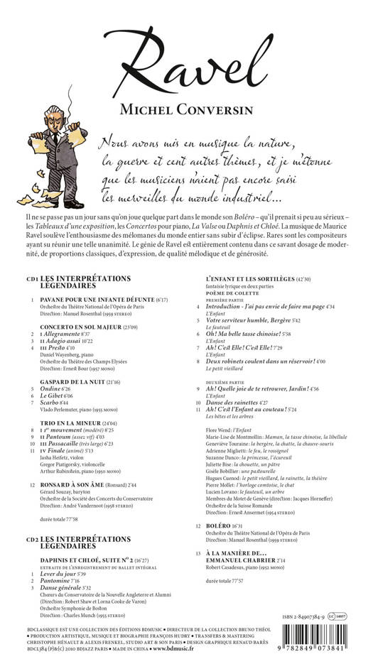 La biographie de Maurice Ravel par François Hudry, illustrée par Michel Conversin et accompagnée de 2 compacts discs