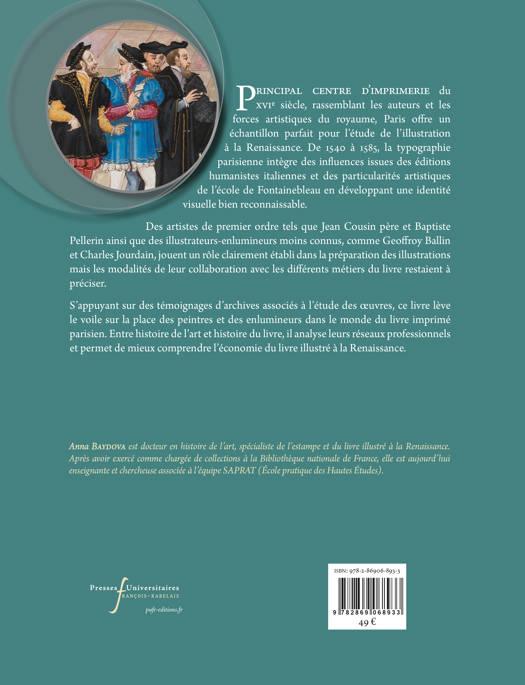 Principal centre d’imprimerie du XVIe siècle, rassemblant les auteurs et les forces artistiques du royaume, Paris offre un échantillon parfait pour l’étude de l’illustration à la Renaissance. De 1540 à 1585, la typographie parisienne intègre des influences issues des éditions humanistes italiennes et des particularités artistiques de l’école de Fontainebleau en développant une identité visuelle bien reconnaissable. Des artistes de premier ordre tels que Jean Cousin père et Baptiste Pellerin ainsi que des illustrateurs-enlumineurs moins connus, comme Geoffroy Ballin et Charles Jourdain, jouent un rôle clairement établi dans la préparation des illustrations mais les modalités de leur collaboration avec les différents métiers du livre restaient à préciser. S’appuyant sur des témoignages d’archives associés à l’étude des oeuvres, ce livre lève le voile sur la place des peintres et des enlumineurs dans le monde du livre imprimé parisien. Entre histoire de l’art et histoire du livre, il analyse leurs réseaux professionnels et permet de mieux comprendre l’économie du livre illustré à la Renaissance.