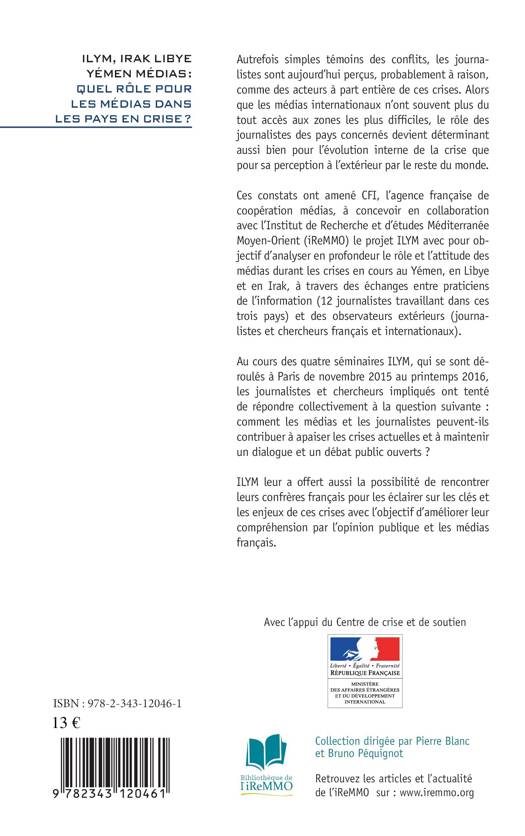 Autrefois simples témoins des conflits, les journalistes sont aujourd'hui perçus comme des acteurs à part entière de ces crises. Alors que les médias internationaux n'ont souvent plus du tout accès aux zones les plus difficiles, le rôle des journalistes des pays concernés devient déterminant aussi bien pour l'évolution interne de la crise que pour sa perception à l'extérieur par le reste du monde. Le projet ILYM, conçu par CFI, l'agence française de coopération média et l'iReMMO, a pour objectif d'analyser en profondeur le rôle et l'attitude des médias durant les crises en cours au Yémen, en Libye et en Irak, à travers des échanges entre praticiens de l'information et observateurs extérieurs.