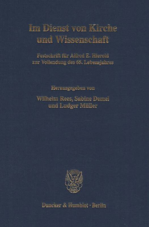 Die Festschrift "Im Dienst von Kirche und Wissenschaft" ist dem Bamberger Kirchenrechtler Alfred E. Hierold zur Vollendung seines 65. Lebensjahres und zugleich zur Beendigung seiner Lehrtätigkeit an der Otto-Friedrich-Universität in Bamberg gewidmet. Der Titel umfasst wesentliche Inhalte von Leben und Wirken des anerkannten Wissenschaftlers und geschätzten Priesters. Alfred E. Hierold wurde am 29. Dezember 1941 in Vohenstrauß in der Oberpfalz geboren. Nach dem Studium der Philosophie und Theologie in Regensburg und München wurde er 1967 von seinem Heimatbistum für das kirchenrechtliche Fachstudium am Kanonistischen Institut der Ludwig-Maximilians-Universität München (heute Klaus-Mörsdorf-Studium für Kanonistik) freigestellt. Lehraufträge, die Alfred Hierold zwischen 1979 und 1981 an verschiedenen Hochschulen innehatte, wiesen ihn nicht nur auf die akademische Laufbahn, sondern brachten ihn schließlich auch in jene Stadt, in der er seit seiner Ernennung am 1. April 1981 zum Ordinarius für Kirchenrecht bis zu seiner nunmehr erfolgten Emeritierung tätig sein sollte. Neben den originären Aufgaben eines Universitätsprofessors in Forschung und Lehre übernahm er schon bald für viele Jahre an der Fakultät und Universität andere Funktionen und repräsentative Ämter, die ein hohes Maß an verwalterischen Fähigkeiten und hochschulpolitischem Geschick erforderten, so als Dekan der Katholisch-Theologischen Fakultät und als Rektor der Otto-Friedrich-Universität. Darüber hinaus stand und steht der Jubilar immer auch im Dienst der Kirche, als Seelsorger, in der diözesanen Gerichtsbarkeit und als Berater auf den verschiedenen kirchlichen Ebenen, in der Erzdiözese Bamberg wie für die Deutsche Bischofskonferenz und den Apostolischen Stuhl.