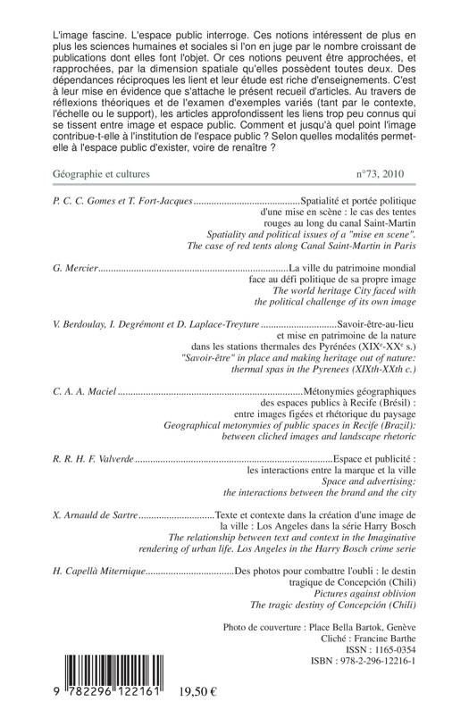 L'image fascine. L'espace public interroge. Ces notions peuvent être approchées et rapprochées par la dimension spatiale qu'elles possèdent toutes deux. Des dépendances réciproques les lient et leur étude est riche d'enseignements. Comment et jusqu'à quel point l'image contribue-t-elle à l'institution de l'espace public ? Selon quelles modalités permet-elle à l'espace public d'exister, voire de renaître ?