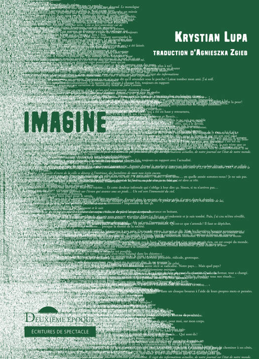 À partir des paroles de la célèbre chanson de John Lennon qui fut, pour la génération hippie, comme un nouvel évangile porteur de la promesse d'un monde différent — soit une humanité sans guerres ni frontières, sans haine, sans religion — Krystian Lupa et ses acteurs donnent à penser quant à la viabilité de l'utopie, sur une planète où la spiritualité a été commercialisée ou dévoyée en politiques identitaires, où les valeurs humanistes, les droits de l'homme, l'égalité et la liberté individuelle sont sans cesse bafoués, et où l’omniprésence de la destruction semble s'être substituée à l'idée même d'un développement positif de l'être humain.