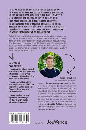 Grâce à cet outil pédagogique composé d’un manuel, de 36 cartes détachables et d’un dépliant illustré, se projeter dans un futur désirable devient un vrai plaisir. Job, alimentation, transport, logement, santé, éducation… Tous ensemble, nous pouvons réfléchir à un monde meilleur dès 2030 dans tous les domaines et passer à l’action sans plus tarder !