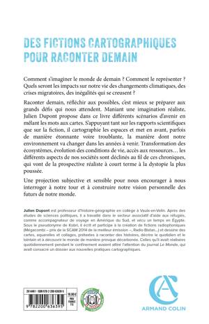 Raconter demain, réfléchir aux possibles, c’est mieux se préparer aux grands défis qui nous attendent. Maniant une imagination réaliste, Julien Dupont, professeur d’histoire-géographie au collège, propose dans ce livre une vision scénarisée de notre avenir par les cartes. S’appuyant sur des données scientifiques (les rapports du GIEC, les données de l’Office mondial des migrations, l’INSEE, des travaux universitaires) enrichies de ce que nous propose la fiction (littérature, cinéma, séries), il cartographie les espaces et met en avant, parfois de manière étonnante voire troublante, la manière dont notre environnement va changer dans les années à venir. Écosystèmes, habitat, ressources, frontières, migrations, technologies, etc., sont déclinés au fil de ces chroniques cartographiques, qui vont de la prospective réaliste à court terme à la dystopie la plus poussée.