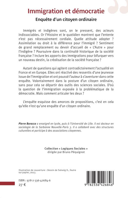 Autant de questions qui agitent contradictoirement l’actualité en France et en Europe. Elles ont réactivé des ressentis d’une jeunesse issue de l’immigration et ont poussé l’auteur à s’aventurer dans cette enquête. Volontairement dans la posture d’un citoyen ordinaire, sans pour cela se départir des outils des sciences sociales. D’où la question de l'immigration exposée à la problématique de la démocratie. Mais comment articuler les deux  ?