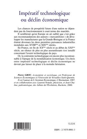 Les chances de prospérité future d'une nation ne dépendent pas du fonctionnement à court terme des marchés. Il semblerait qu'en Europe on ait oublié que c'est grâce aux recommandations des auteurs « mercantilistes » de développer les manufactures que la Grande-Bretagne et la France étaient devenues les deux premières puissances industrielles mondiales aux XVIIIème et XIXème siècles. En France, en fin de XXème siècle et au début du XXJème siècle, un silence de plus en plus assourdissant s'est installé concernant l'avenir technologique du pays. Or, la contrainte technologique est encore plus incontournable à l'époque de la mondialisation économique. Un choix entre impératif technologique et déclin économique ne devrait pas laisser de place à la moindre hésitation.