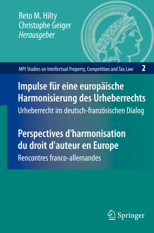 Die Harmonisierung des Urheberrechts in Europa wird auch in den kommenden Jahren eine Herausforderung bleiben. Vor diesem Hintergrund erscheint ein Vergleich des deutschen und des französischen Urheberrechts besonders lehrreich. Das Max-Planck-Institut für Geistiges Eigentum und das Institut de Recherche en Propriété Intellectuelle Henri-Desbois haben aus diesem Grund beschlossen, gemeinsam von einem deutsch-französischen Standpunkt aus die Perspektiven eines Urheberrechts auf europäischer Ebene auszuloten. Von September 2004 bis Januar 2006 fand eine Vortragsreihe im Wechsel in München und Paris statt, in deren Rahmen namhafte Urheberrechtexperten beider Länder zentrale Fragen des Urheberrechts diskutierten. Ziel der gemeinsamen Überlegungen war es, dem europäischen Gesetzgeber auf unabhängigem Wege Lösungsmöglichkeiten für eine Harmonisierung aufzuzeigen. Die ideenreichen Beiträge dieser Vortragsreihe sind im vorliegenden Band abgedruckt.