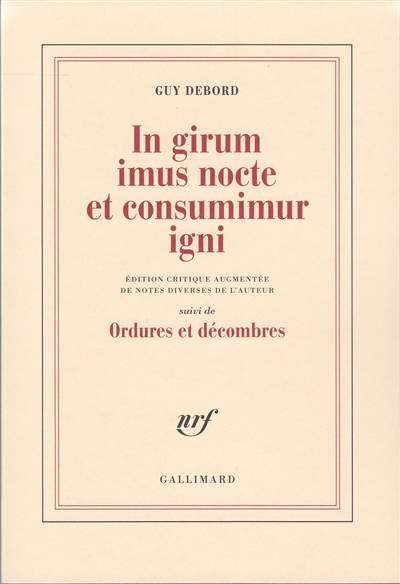 Le 1ᵉʳ janvier 1977, Guy Debord signait un contrat avec la société Simar Films pour la réalisation d'un long métrage en 35 mm, en noir et blanc, d'une durée de 90 mn. Il y était stipulé, d'entrée : "Il est entendu que l'auteur accomplira son travail en toute liberté, sans contrôle de qui que ce soit, et sans tenir compte de quelque observation que ce soit sur aucun aspect du contenu ni de la forme cinématographique qu'il lui paraîtra convenable de donner à son film." Le titre même du film ne fut révélé qu'une fois celui-ci réalisé. C'est ainsi que procédait Guy Debord, suivant toujours "un principe naturellement peu favorable à la spéculation fiancière", et ses producteurs ne s'en plaignirent point. Les media, eux, au nom d'un public autrement malmené, regimbèrent. Ordures et décombres déballés à la sortie du film "In girum imus nocte et consumimur igni", qui paraissait en 1982, sans le moindre commentaire (et que nous reprenons en l'augmentant de deux articles), a fait état des diverses réactions, peu variées, de la presse. Face au mur d'incompréhension plus ou moins feinte et aux interprétations erronées, Guy Debord jugea utile en 1990 de publier une édition critique du texte de son film. C'est ce texte que nous donnons ici à relire. Il est suivi d'une note inédite, datée du 22 décembre 1977, qui donne à voir les images, la poésie et le sens profond qui tissent la trame d'un film dont le thème tourne autour de "la vie réelle".
