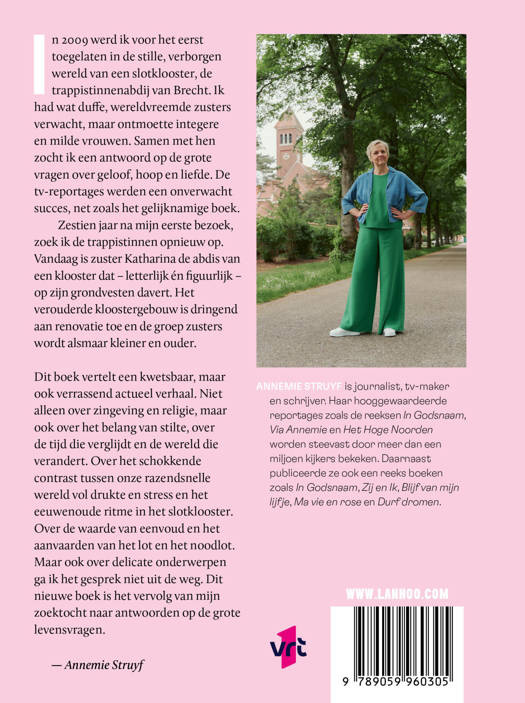 In 2009 werd ik voor het eerst toegelaten in de stille, verborgen wereld van een slotklooster, de trappistinnenabdij van Brecht. Ik had wat duffe, wereldvreemde zusters verwacht, maar ontmoette integere en milde vrouwen. Samen met hen zocht ik een antwoord op de grote vragen over geloof, hoop en liefde. De tv-reportages werden een onverwacht succes, net zoals het gelijknamige boek.