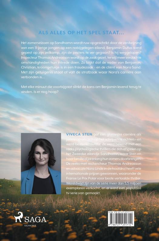 Het zomerseizoen op Sandhamn wordt ruw opgeschrikt door de verdwijning van een 11-jarige jongen op een nabijgelegen eiland. Benjamin Dufva werd gepest op zijn zeilkamp, zijn de pesters te ver gegaan? Is hij weggelopen? Inspecteur Thomas Andreasson wordt op de zaak gezet, terwijl meer verdachte omstandigheden hun intrede doen. Zo blijkt dat de vader van Benjamin, Christian, kroongetuige is in een fraudezaak - en de cliënt van Nora Sand. Met zijn getuigenis staat of valt de strafzaak waar Nora's carrière aan verbonden is... Met elke minuut die voorbijgaat slinkt de kans om Benjamin levend terug te vinden. Is er nog hoop?