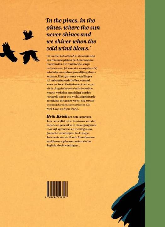Erik Kriek koestert al jaren een grote liefde voor deze muziek en koos voor In the Pines een vijftal favoriete songs. Deze gebruikte hij als uitgangspunt voor zijn eigenzinnige beeldverhalen. De songteksten van Nick Cave, Johnny Cash, Gillian Welch en Steve Earle vormden de inspiratie voor vijf grimmige verhalen over liefde, verraad, het leven en - uiteraard - de dood. De tekeningen ademen de sfeer van het Amerikaanse platteland van begin vorige eeuw. In de uitgestrekte naaldbossen gebeuren zaken die het daglicht soms maar moeilijk kunnen verdragen...