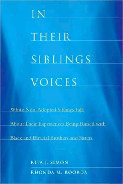 In Their Siblings' Voices shares the stories of twenty white non-adopted siblings who grew up with black or biracial brothers and sisters in the late 1960s and 1970s. Belonging to the same families profiled in Rita J. Simon and Rhonda M. Roorda's In Their Own Voices: Transracial Adoptees Tell Their Stories and In Their Parents' Voices: Reflections on Raising Transracial Adoptees, these siblings offer their perspectives on the multiracial adoption experience, which, for them, played out against the backdrop of two tumultuous, politically charged decades. Simon and Roorda question whether professionals and adoption agencies adequately trained these children in the challenges presented by blended families, and they ask if, after more than thirty years, race still matters. Few books cover both the academic and the human dimensions of this issue. In Their Siblings' Voices helps readers fully grasp the dynamic of living in a multiracial household and its effect on friends, school, and community.