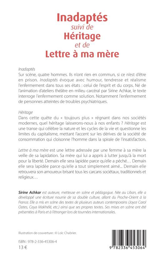 Inadaptés évoque avec humour, tendresse et réalisme l'enfermement dans tous ses états: celui de l'esprit et du corps. Né de l'animation d'ateliers théâtre en milieu carcéral par Sirine Achkar, le texte interroge l'enfermement comme solution. Notamment l'enfermement de personnes atteintes de troubles psychiatriques.