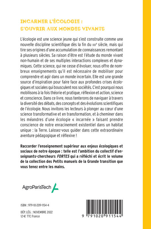 Raccorder l'enseignement supérieur aux enjeux écologiques et sociaux de notre époque, voilà l'ambition du collectif d'enseignants- chercheurs FORTES qui a réfléchi et écrit ce Petit manuel de la Grande transition. Cet ouvrage s'inscrit au sein d'une collection de petits manuels sur des thématiques et disciplines cruciales au regard de l'impact qu'elles peuvent avoir pour accélérer la Grande transition. Cette collection de petits manuels complète le Manuel de la Grande Transition élaboré par le collectif FORTES et publié aux Liens qui Libèrent en 2020.
