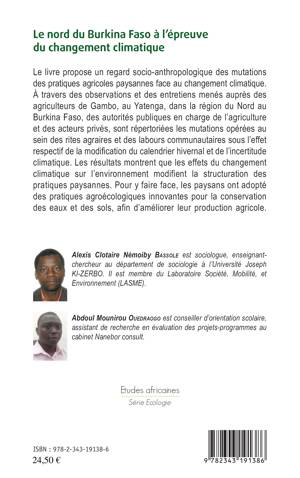 Le livre propose un regard socio-anthropologique des mutations des pratiques agricoles paysannes face au changement climatique. À travers des observations et des entretiens menés auprès des agriculteurs de Gambo, au Yatenga, dans la région du Nord au Burkina Faso, des autorités publiques en charge de l'agriculture et des acteurs privés, sont répertoriées les mutations opérées au sein des rites agraires et des labours communautaires sous l'effet respectif de la modification du calendrier hivernal et de l'incertitude climatique.