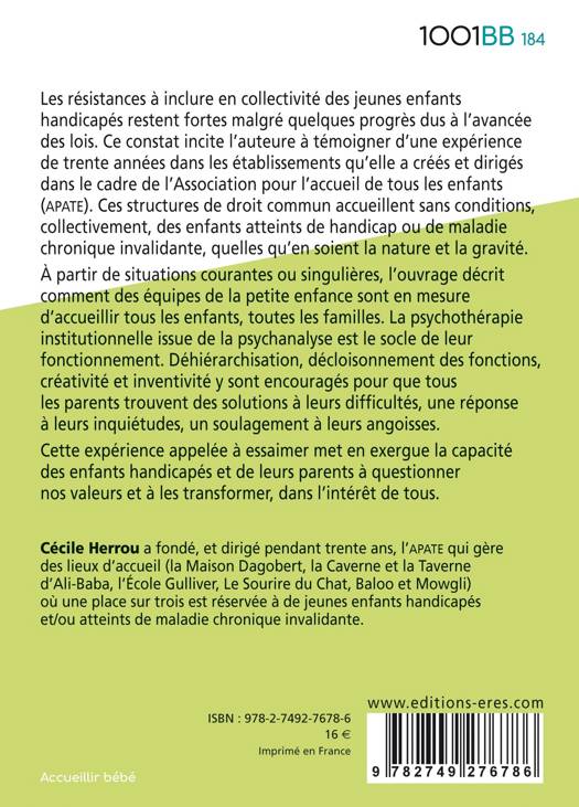 La révélation d’un handicap ou d’une grave maladie invalidante d’un tout petit est un traumatisme pour ses parents. Cet ouvrage, écrit par la fondatrice et directrice générale de l’APATE (Association pour l’accueil de tous les enfants), témoigne du travail d’équipes d’accueil de la petite enfance durant trente années (1990-2020), dans des établissements dont la particularité est de réserver une place sur trois aux enfants en situation de handicap. Elle plaide pour une action sociale dont l’aboutissement le plus total lui apparaît s’incarner dans l’accueil sans condition de ces enfants en collectivité de droit commun. C’est en confiant leurs enfants à des professionnel.le.s de la petite enfance que les parents peuvent trouver en eux les ressources pour surmonter leur trauma. La psychothérapie institutionnelle adaptée à ce milieu en est la condition.