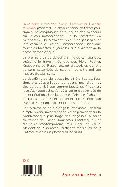Baptiste Mylondo et Michel Lepesant nous proposent un choix raisonné de textes politiques, philosophiques et critiques des penseurs du revenu inconditionnel.