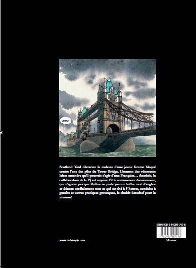 Avec ce nouvel album, L'Inconnue de Tower Bridge , le commissaire Raffini fait sa première incursion hors de l'hexagone. Scotland Yard vient en effet de récupérer le cadavre d'une jeune femme bloquée contre les piles du Tower Bridge. L'examen des vêtements laisse entendre qu'il pourrait s'agir d'une Française. Aussi, la collaboration de la police française est-elle souhaitée. Le commissaire divisionnaire, qui sait que Raffini ne parle pas un traître mot de la langue de Shakespeare et déteste cordialement tout ce qui est thé à 5 heures, conduite à gauche et autres comportements et pratiques grotesques, le choisit aussitôt pour la mission. Ainsi démarre cette enquête qu'en son for intérieur Raffini a rebaptisé Raffini chez ces Foutus Rosbeefs ! Une histoire - on l'aura compris - non dénuée d'humour, mais qui conjugue aussi action, émotion et suspense.