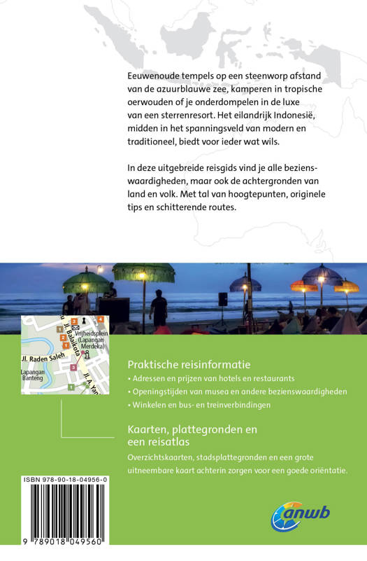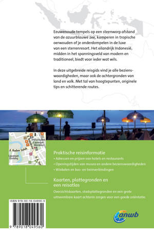 De uitgebreide Indonesië reisgids telt bijna 600 pagina’s boordevol hoogtepunten, originele tips, schitterende wandelroutes en alles over de achtergronden van land en volk. Daarnaast alle praktische informatie zoals openingstijden van musea, tips voor overnachtingen en vervoerstijden. Inclusief stadsplattegronden, overzichtskaarten en achterin een kleine atlas. Kortom: een onmisbare ANWB gids voor een geweldige rondreis door Indonesië.