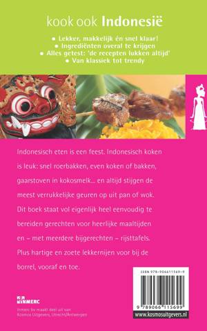 Indonesisch eten is een feest. Indonesisch koken is leuk: snel roerbakken, even koken of bakken, gaarstoven in kokosmelk... en altijd stijgen de meest verrukkelijke geuren op uit pan of wok. Dit boek staat vol met eigenlijk heel eenvoudig te bereiden gerechen voor heerlijke maaltijden en - met meerdere bijgerechten - rijsstafels. Plus hartige en zoete lekkernijen voor bij de borrel, vooraf en toe. * Lekker, makkelijk én snel klaar! * Ingrediënten overal te krijgen * Alles getest: 'de recepten lukken altijd' * van klassiek tot trendy