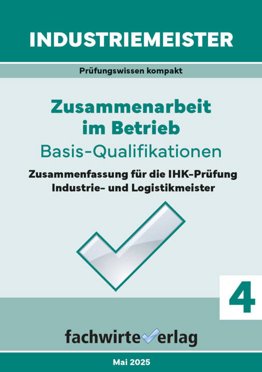 Letzte berücksichtigte Klausur: April 2025; ein Repetitorium aus der Reihe Prüfungswissen kompakt, Inhalt nach DIHK-Rahmenplan für die Prüfung der Industriemeister. Dieser Band dient der Wiederholung im Fach Zusammenarbeit im Betrieb, um sich auf die Klausur oder eine Ergänzungsprüfung vorzubereiten. In den letzten Wochen vor den Klausuren ist die Fülle der Skripten und ergänzenden Unterlagen oft mehr bedrohlich als hilfreich. Diese Reihe trägt dem Bedürfnis nach Zusammenfassungen Rechnung, die auf alles verzichten, was nicht unmittelbar prüfungsrelevant ist, aber auch nichts weglassen, was in der Klausur gebraucht wird. Es wurden alle bisher in diesem Fach gestellten Klausurfragen seit 2009 berücksichtigt. Bei jedem Thema ist angegeben, in welcher Klausur der Stoff vorkam. Damit können bei der Vorbereitung schnell zu jedem wichtigen Thema alte Klausurfragen zum Lernen und Üben gefunden werden. Zusätzlich wurden aufgenommen ein Extra-Kapitel zur Ergänzungsprüfung, Kontrollfragen nach jedem Kapitel, Klausuraufgaben mit Lösungshinweisen zum Üben.