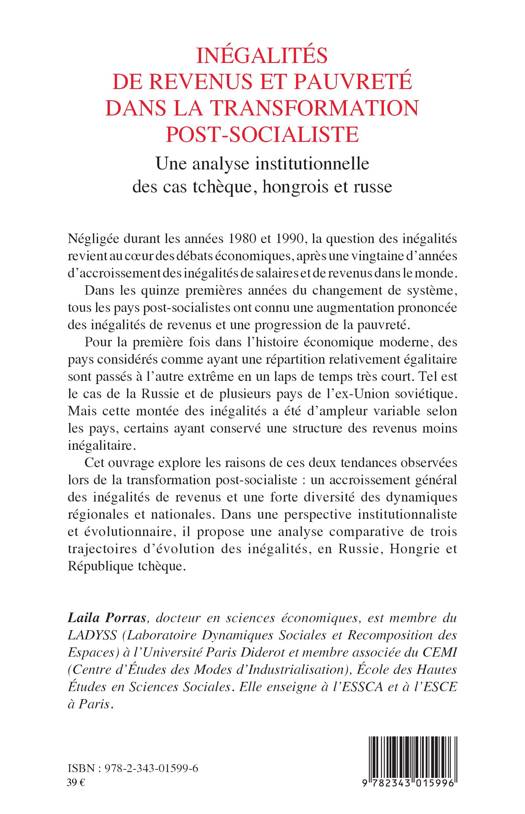 Pour la première fois, des pays considérés comme ayant une répartition relativement égalitaire à l'image de de la Russie et de plusieurs pays de l'ex-Union Soviétique sont passés à l'autre extrême. Mais cette montée des inégalités a été d'ampleur variable selon les pays. Cet ouvrage explore les raisons des deux tendances observées lors de la transformation post-socialiste : un accroissement général des inégalités de revenus et une forte diversité des dynamiques régionales et nationales.