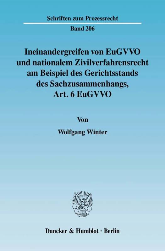 Die Europäisierung des Zivilprozessrechts schreitet immer weiter voran. Vor allem im internationalen Verfahrensrecht wird das nationale Recht von Rechtsakten der EU verdrängt, zum Teil sogar vereinheitlicht. Von besonderem Interesse ist daher, ob und welche Schnittstellen es zwischen dem europäischen internationalen Verfahrensrecht und den nationalen Verfahrensregelungen gibt. Diese Schnittstellen zeigen sich besonders deutlich an Art. 6 EuGVVO. Dieser trifft als Ausnahmeregelung unter den dort genannten Voraussetzungen eine Zuständigkeit aus dem Sachzusammenhang und durchbricht damit den Grundsatz actor sequitur forum rei. Entsprechend der vier Ziffern des Art. 6 EuGVVO ist die Arbeit in vier Kapitel gegliedert.Im ersten Kapitel behandelt Wolfgang Winter den Mehrparteiengerichtsstand. Die Drittstaatenproblematik nimmt hier besonderen Raum ein, ein weiterer Schwerpunkt liegt auf dem Erfordernis der Konnexität. Im darauffolgenden Kapitel beschäftigt er sich mit dem Gerichtsstand der Gewährleistungs- und Interventionsklage. Größeren Raum nehmen hier mögliche Schranken der Zuständigkeit ein. Die Sonderregelung für Deutschland, Österreich und Ungarn, denen die Gewährleistungs- und Interventionsklage fremd sind und die stattdessen mit der Rechtsfigur der Streitverkündung arbeiten, greift der Autor separat auf. Im Mittelpunkt des dritten Kapitels steht der Gerichtsstand der Widerklage. Wieder nimmt das Konnexitätserfordernis besonderen Raum ein. Der Autor behandelt die Prozessaufrechnung in Abgrenzung zur Widerklage gesondert. Im vierten Kapitel schließlich widmet sich Winter dem dinglichen Gerichtsstand des Sachzusammenhangs. Die Begriffsbestimmung ist hier von größerem Interesse. Eine Zusammenfassung der Ergebnisse rundet die Arbeit ab.