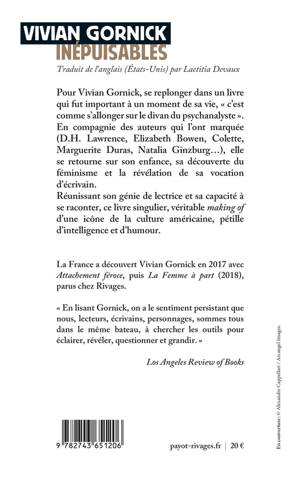 Dans ce nouveau livre, Vivian Gornick revient sur les auteurs qui ont marqué sa vie, lus et relus à différentes périodes. L'occasion pour elle de combiner son génie de lectrice et sa capacité à se raconter. C'est la première fois que le public français pourra apprécier un de ses talents majeurs, la critique littéraire, après avoir plébiscité son travail autobiographique. A ses côtés, on arpente sa bibliothèque intime - Colette, Duras, Doris Lessing, etc. - et, en pointillés, son existence. Un livre singulier, qui pétille d'intelligence et d'humour.