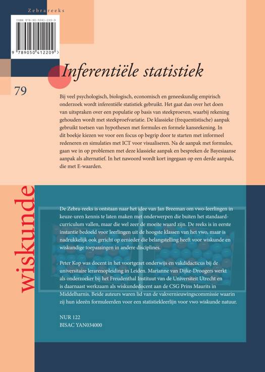 Bij veel psychologisch, biologisch, economisch en geneeskundig empirisch onderzoek wordt inferentiële statistiek gebruikt. Het gaat dan over het doen van uitspraken over een populatie op basis van steekproeven, waarbij rekening gehouden wordt met steekproefvariatie. De klassieke (frequentistische) aanpak gebruikt toetsen van hypothesen met formules en formele kansrekening. In dit boekje kiezen we voor een focus op begrip door te starten met informeel redeneren en simulaties met ICT voor visualiseren. Na de aanpak met formules, gaan we in op problemen met deze klassieke aanpak en bespreken de Bayesiaanse aanpak als alternatief. In het nawoord wordt kort ingegaan op een derde aanpak, die met E-waarden.