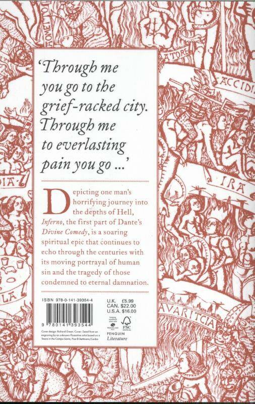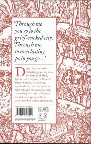 A translation that describes Dante's descent into Hell with Virgil as a guide. It depicts a cruel underworld in which desperate figures are condemned to eternal damnation for committing one or more of seven deadly sins. It also includes explanatory notes and illustrations showing the different layers of hell.