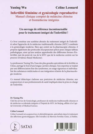 Ce manuel clinique est l'ouvrage le plus complet et le plus détaillé sur le traitement de l'infertilité féminine et de la gynécologie de la reproduction disponible en langue anglaise. L'équipe d'auteurs est dirigée par le docteur Yuning Wu (un maître de la médecine traditionnelle chinoise et de la biomédecine moderne). Le contenu de la médecine chinoise s'appuie sur une différenciation précise des maladies et des schémas, et les prescriptions et modifications à base de plantes sont fondées sur une compréhension approfondie de la materia medica et sur des dizaines d'années d'expérience clinique. Les prescriptions d'acupuncture sont également fournies en fonction du schéma. En même temps, un compte rendu de pointe sur les diagnostics et les traitements biomédicaux actuels permet aux praticiens d'évaluer le pronostic et le meilleur traitement pour leurs patients et de communiquer efficacement avec tous les autres spécialistes de l'infertilité. La théorie est illustrée par de nombreux cas pratiques.
