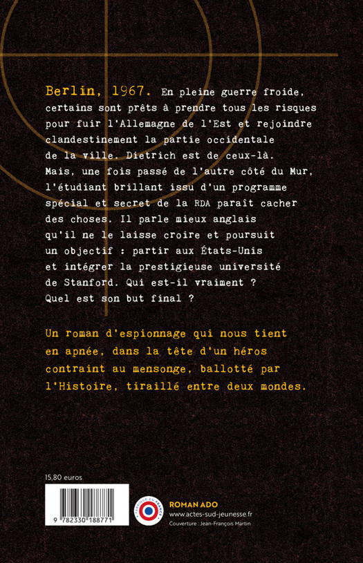 Berlin, 1967. En pleine guerre froide, certains sont prêts à prendre tous les risques pour fuir l'Allemagne de l'Est et rejoindre clandestinement la partie occidentale de la ville. Dietrich est de ceux-là. Mais, une fois passé de l'autre côté du Mur, l'étudiant brillant issu d'un programme spécial et secret de la RDA paraît cacher des choses. Il parle mieux anglais qu'il ne le laisse croire et poursuit un objectif : partir aux États-Unis et intégrer la prestigieuse université de Stanford. Qui est-il vraiment ? Quel est son but final ?
