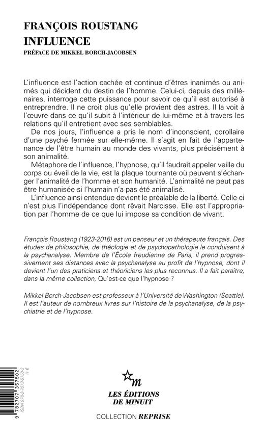 L’influence est l’action cachée et continue d’êtres inanimés ou animés qui décident du destin de l’homme. Celui-ci, depuis des millénaires, interroge cette puissance pour savoir ce qu’il est autorisé à entreprendre. Il ne croit plus qu’elle provient des astres. Il la voit à l’œuvre dans ce qu’il subit à l’intérieur de lui-même et à travers les relations qu’il entretient avec ses semblables.