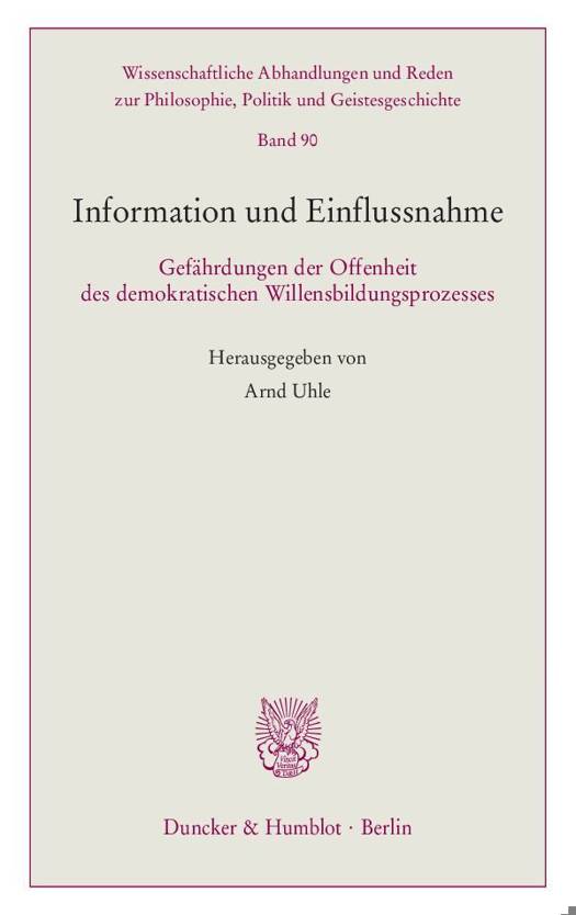 Die Offenheit demokratischer Willensbildung ist ein schutzbedurftiges Gut, das nach dem Urteil vieler Zeitgenossen gegenwartig besonderen Gefahrdungen ausgesetzt ist. Dies ist dem vorliegenden Sammelband Anlass, sich der Frage zu widmen, wo solche Gefahrdungen bestehen und ob bzw. wie ihnen mit den Instrumenten des Rechts begegnet werden kann. Wie verhalt es sich etwa mit der Offenheit demokratischer Willensbildung im offentlich-rechtlichen Rundfunk? Wo verlaufen die Grenzen offentlicher Auaerungsbefugnisse von Reprasentanten des Staates? Welche Schranken bestehen fur die Nutzung der Neuen Medien durch die Regierung? Wie ist es zu bewerten, wenn auslandische Hoheitstrager auf deutschem Terrain auf die politische Willensbildung Einfluss zu nehmen versuchen? Und treffen den Staat angesichts von Fake News und Hate Speech neue Verpflichtungen zur Gewahr kommunikativer Wahrheit? Diesen und weiteren Fragestellungen spuren die Abhandlungen des vorliegenden Sammelbandes nach. Hervorgegangen sind sie aus Vortragen, die im Herbst 2017 in der Rechts- und Staatswissenschaftlichen Sektion der Gorres-Gesellschaft zur Pflege der Wissenschaft gehalten worden sind.