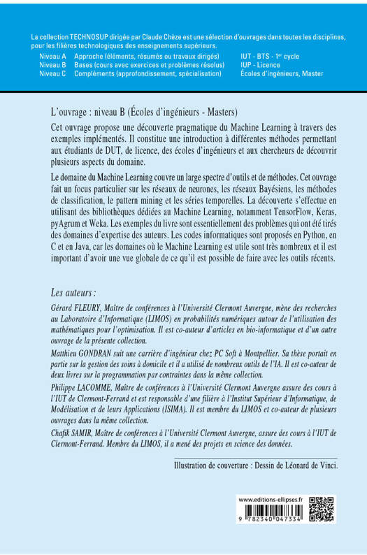 Cet ouvrage propose une découverte pragmatique du Machine Learning à travers des exemples implémentés. Il constitue une introduction à différentes méthodes permettant aux étudiants de DUT, de licence, des écoles d'ingénieurs et aux chercheurs de découvrir plusieurs aspects du domaine.