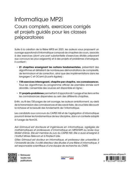 Cet ouvrage approfondi d'Informatique pour la filière MP2I est composé de chapitres de cours, et d'exercices (dont une part prépare aux concours les plus exigeants) ainsi que de projets et problèmes d’envergure. Il contient :