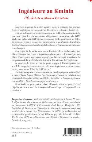 L'ouvrage interroge la mixité scolaire, dans le contexte des grandes écoles d'ingénieurs, en particulier de l'École Arts et Métiers ParisTech. C'est à partir du croisement entre l'histoire de la scolarisation des filles, l'histoire des écoles d'ingénieurs,et les stratégies des filles que seront exposés les facteurs qui ralentissent la progression de la mixité dans le domaine des sciences de l'ingénieur. Le concept de genre servira de point d'appui à l'interrogation qui sera le fil rouge de cette recherche.