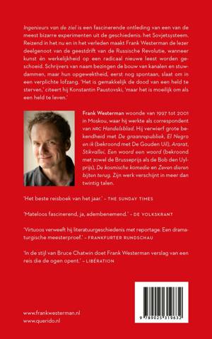 Ingenieurs van de ziel legt de worsteling bloot van schrijvers in totalitaire tijden. Reizend in het nu en het verleden ontrafelt Frank Westerman de tragische levensloop van de romanticus Konstantin Paustovski en diens tijdgenoten. Hij maakt de lezer deelgenoot van de geestdrift van de Russische Revolutie, wanneer de kunst én de werkelijkheid op een radicaal nieuwe leest worden geschoeid. Schrijvers van naam bezingen de bouw van kanalen en stuwdammen in titels als Voorwaarts, tijd! en Energie. Terwijl de kolossale waterwerken tot vernietiging leiden, bouwen de Sovjetschrijvers onverminderd voort aan een illusiemaatschappij.