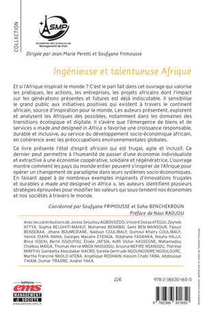 Ce livre présente l’état d’esprit africain qui est frugal, agile et inclusif. Ce dernier peut permettre à l’humanité de passer d’une économie individualiste et extractive à une économie coopérative, solidaire et régénératrice. L’ouvrage montre comment les pays du monde entier peuvent s’inspirer de l’Afrique pour opérer un changement de paradigme dans leurs systèmes socio-économiques. En faisant appel à de nombreux exemples inspirants d’innovations frugales et durables « made and designed in Africa », les auteurs identifient plusieurs stratégies éprouvées pour modifier les valeurs qui sous-tendent nos économies et nos sociétés à travers le monde.