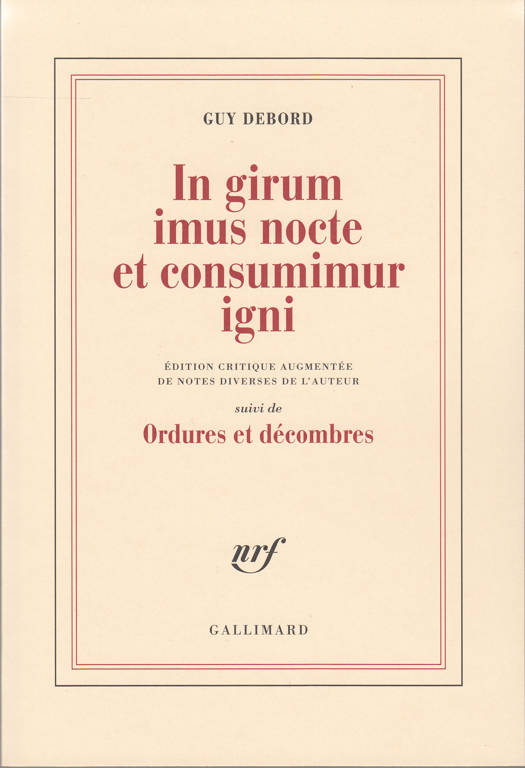 Le 1ᵉʳ janvier 1977, Guy Debord signait un contrat avec la société Simar Films pour la réalisation d'un long métrage en 35 mm, en noir et blanc, d'une durée de 90 mn. Il y était stipulé, d'entrée : "Il est entendu que l'auteur accomplira son travail en toute liberté, sans contrôle de qui que ce soit, et sans tenir compte de quelque observation que ce soit sur aucun aspect du contenu ni de la forme cinématographique qu'il lui paraîtra convenable de donner à son film." Le titre même du film ne fut révélé qu'une fois celui-ci réalisé. C'est ainsi que procédait Guy Debord, suivant toujours "un principe naturellement peu favorable à la spéculation fiancière", et ses producteurs ne s'en plaignirent point. Les media, eux, au nom d'un public autrement malmené, regimbèrent. Ordures et décombres déballés à la sortie du film "In girum imus nocte et consumimur igni", qui paraissait en 1982, sans le moindre commentaire (et que nous reprenons en l'augmentant de deux articles), a fait état des diverses réactions, peu variées, de la presse. Face au mur d'incompréhension plus ou moins feinte et aux interprétations erronées, Guy Debord jugea utile en 1990 de publier une édition critique du texte de son film. C'est ce texte que nous donnons ici à relire. Il est suivi d'une note inédite, datée du 22 décembre 1977, qui donne à voir les images, la poésie et le sens profond qui tissent la trame d'un film dont le thème tourne autour de "la vie réelle".