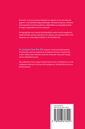 dr. Jacques Van Der Elst is doctor in business administration en doceerde zowel op academisch als hogeschoolniveau. Hij gaf onder andere vakken zoals statistiek, financiële wiskunde, fi nancieel management en bedrijfseconomie. Zijn publicaties, thans zestig in totaal, situeren zich in de domeinen van de toegepaste wiskunde, het fi nancieel management, de bedrijfseconomie en de accountancy.
