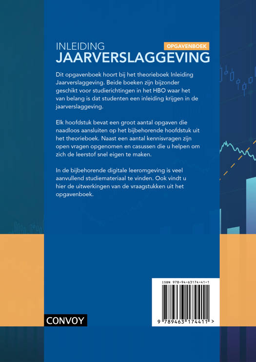 Dit opgavenboek hoort bij het theorieboek Inleiding Jaarverslaggeving. Beide boeken zijn bijzonder geschikt voor studierichtingen in het HBO waar het van belang is dat studenten een inleiding krijgen in de jaarverslaggeving.