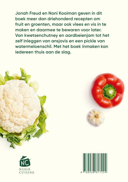 Jonah Freud en Noni Kooiman geven in dit boek meer dan driehonderd recepten om fruit en groenten, maar ook vlees en vis in te maken en daarmee te bewaren voor later. Van kwetsenchutney en aardbeienjam tot het zelf inleggen van ansjovis en een pickle van watermeloenschil. Met het boek Inmaken kan iedereen thuis aan de slag.