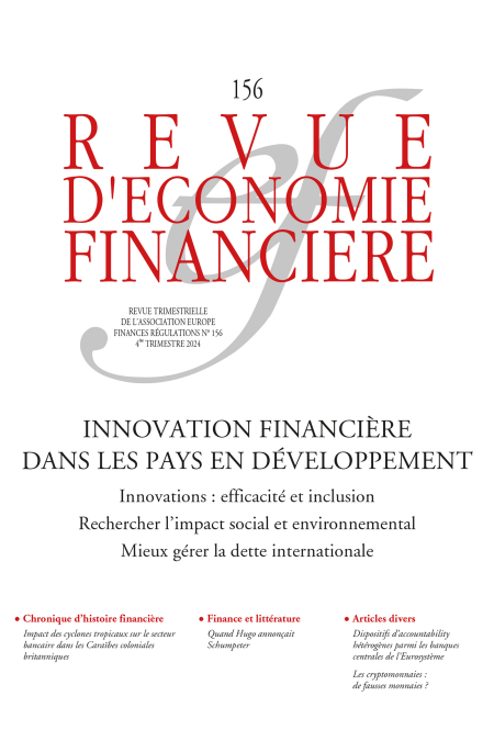 Coordonné par Pierre Jacquet, professeur d’économie à l’École nationale des Ponts et Chaussées (ENPC) et Jean-Michel Severino, senior Research Fellow à la Fondation pour les Études et Recherches sur le Développement International (FERDI), le numéro 156 de la Revue d’économie financière est consacré à l’« Innovation financière dans les pays en développement ».