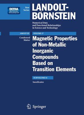 The magnetic properties of silicates and phosphates are compiled in subvolume 27I. While subvolumes 27I1, 27I2 and 27I3 (already published) deal with orthosilicates, sorosilicates and cyclosilicates, respectively, . the present subvolume 27I4 deals with inosilicates. Further subvolumes are dedicated to other types of silicates (phyllosilicates, tectosilicates) and to phosphates. - Silicates are very complex systems, covering large classes of minerals as well as synthetic samples. Their crystal structure is discussed and atomic positions are given. In addition to magnetic properties, results of neutron diffraction studies, nuclear gamma resonance, nuclear magnetic resonance, transport properties, dielectric and optical data are reviewed.