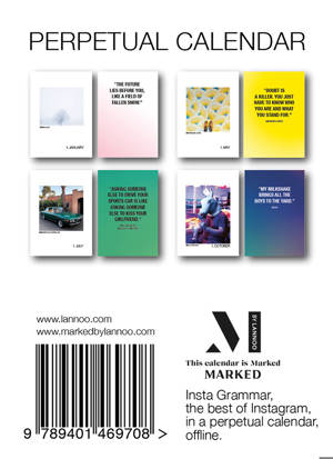 365 Instagram images, collected in a luxurious box that uses colour to define mood and season. The perfect gift: a trendy block-calendar, not bound by year!