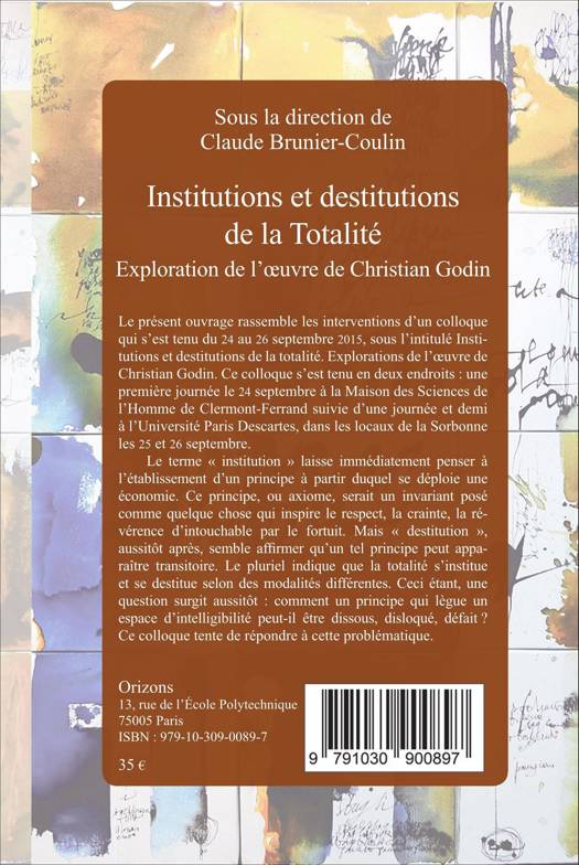 Le présent ouvrage rassemble les interventions d'un colloque qui s'est tenu du 24 au 26 septembre 2015, à la Maison des Sciences de l'Homme de Clermont-Ferrand et à l'Université Paris Descartes, dans les locaux de la Sorbonne. Le terme « institution » laisse immédiatement penser à l'établissement d'un principe à partir duquel se déploie une économie. Ce principe, ou axiome, serait un invariant posé comme quelque chose qui inspire le respect, la crainte, la révérence d'intouchable par le fortuit. Mais « destitution », aussitôt après, semble affirmer qu'un tel principe peut apparaître transitoire. Le pluriel indique que la totalité s'institue et se destitue selon des modalités différentes. Ceci étant, une question surgit aussitôt : comment un principe qui lègue un espace d'intelligibilité peut-il être dissous, disloqué, défait ?